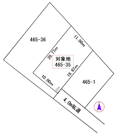| 接道状況 | 一方 (南側 私道4.0m 間口2.0m) | ||