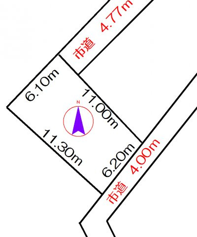 | 接道状況 | 二方 (南東側 公道6.2m 間口4.0m) (北東側 公道4.7m 間口4.7m) | ||