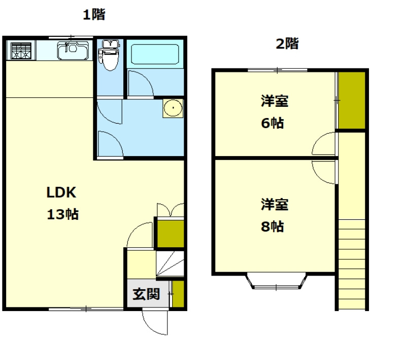 | 設備条件 | 公共下水 / 公営水道 / プロパンガス / ペット相談 / ファミリー向け / 仲介手数料無料 / 室内洗濯機置場 / メゾネット / 出窓 / 電気有 / バス・トイレ別 / 独立洗面台 / 石油暖房 / シューズボックス | ||